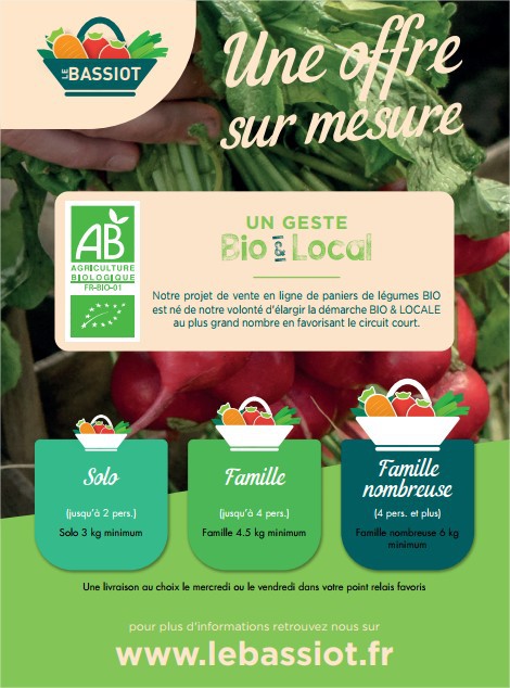 Le projet de Saint Fiacre de vente en ligne de paniers de légumes BIO nommé "LE BASSIOT*" est né d'une volonté d'élargir leur démarche BIO & LOCALE au plus grand nombre et de s'adapter au click&collect, démocratisé par la crise sanitaire.